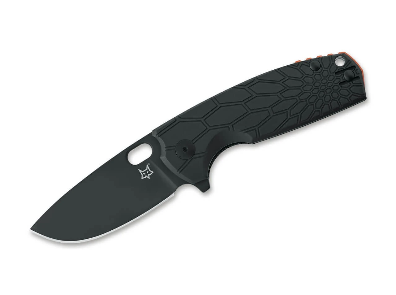 Das mit einer schwarzen Droppoint-Klinge ausgestattete Fox Core von Jesper Voxnæs ist ein absolut funktionsorientiertes Taschenmesser für den Alltag, die Jagd oder den Outdooreinsatz. Die Klinge aus rostfreiem N690 von Böhler verfügt über einen Flipper und das charakteristische Langloch. Die Verriegelung übernimmt ein stabiler Linerlock. Die Griffschalen aus FRN sind mit einer perspektivisch verzerrten Wabenstruktur versehen, welche die Griffsicherheit deutlich erhöht. Der umsetzbare Drahtclip (Tip-up) wird aus 420J2B-Edelstahl gefertigt und kann sowohl links- und rechtsseitig montiert werden. Mit orangefarbenem Spacer.
