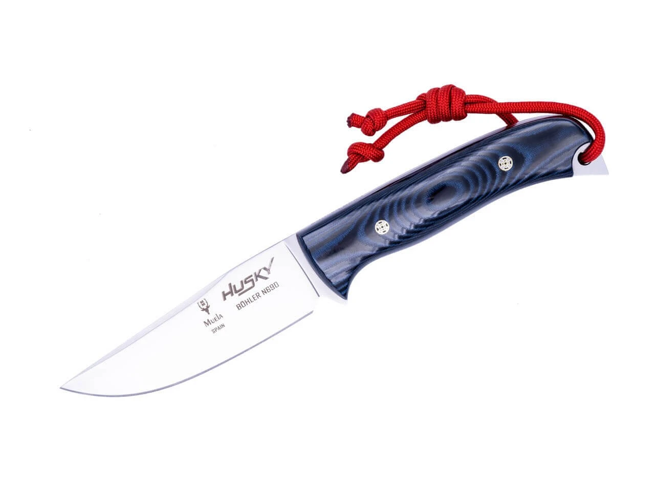 Vor allem im Bereich Outdoor- und Bushcraft hat sich das Muela Husky bereits einen festen Platz gesichert. Der angenehm konturierte und griffig gefräste Micartagriff liegt satt in der Hand und vermittelt ein sicheres Gefühl. In dieser blauen Ausführung setzt der spanische Hersteller einen modernen Akzent. Die satinierte Klinge aus Böhler N690 ist flachgeschliffen und durch ihre universelle Form vielseitig einsetzbar. Lieferung mit edler Lederscheide und rotem Lanyard.