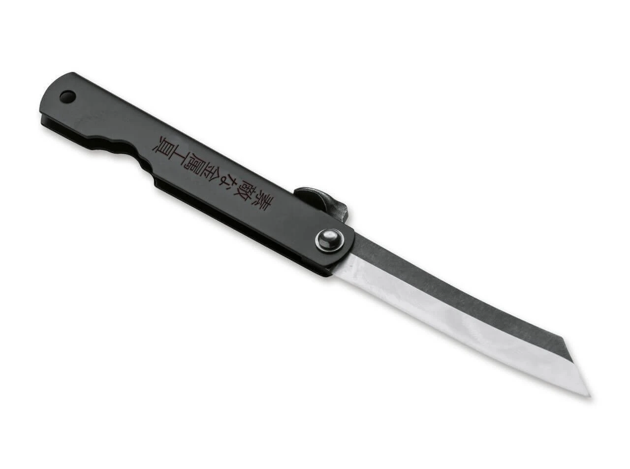 Der gefaltete Griff des Higo Kyoso wird aus dunklem Edelstahl gefertigt und ist mit einer dezenten Fangriemenöse ausgestattet. Die teilweise schwarz beschichtete Klinge besteht aus 7CR und ist mit einem leichten Stonewash-Finish versehen.