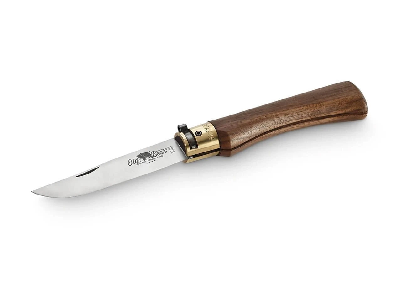 Die einfache Handhabung und die überaus klassische Anmutung dieser traditionellen Taschenmesser mit Walnussholz-Beschalung machen das Old Bear nicht zuletzt im Zusammenspiel mit dem günstigen Einstandspreis zu einem mehr als attraktiven Angebot. Rostfreie Klinge aus 420–Edelstahl, von Hand abgezogen. Hergestellt in Italien.