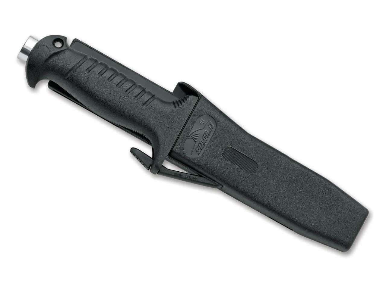 Das professionelle Tauchermesser Squalo 15 MR von MAC ist mit einer Klinge aus 4116 ausgestattet, die zusätzlich über einen bissigen Wellenschliff und einen Gurtschneider verfügt. Der schwarze Griff aus rutschfestem Polypropylen liegt auch unter Wasser sicher in der Hand. Das Schlagstück im Griffende erweitert das Einsatzspektrum. Lieferung mit Polypropylen-Scheide mit Gummibändern für Beine oder Arme.
