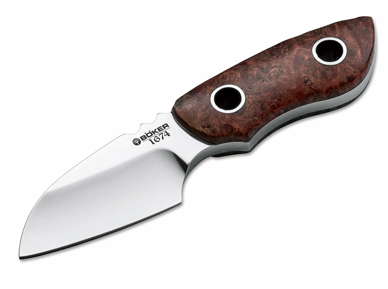 Seit unserer Gründung im Jahr 1869 durch Heinrich Böker verstehen wir uns als geschichtsbewusste Manufaktur. Mit seit jeher kontinuierlicher Firmenhistorie in Solingen fühlen wir uns dem Erbe und unserer Tradition ebenso verpflichtet wie den Themen Innovation und moderne Technologie. Die außergewöhnlich vielfältige Modellpalette unserer Solinger Manufaktur unterstreicht diese Unternehmensphilosophie. 1865 wurde von Robert Böker, einem Cousin von Heinrich, Böker Mexico gegründet. Das Unternehmen befindet sich auch heute noch in Besitz der Familie Böker und wird in 4. Generation geführt. Anlässlich des 150-jährigen Jubiläums von Böker Mexico wurden uns vor Ort hochinteressante, uns bis dato unbekannte Unterlagen zugänglich gemacht, die ein neues Licht auf die Geschichte der Marke Böker werfen. Zurück in Solingen, haben wir uns in Zusammenarbeit mit Historikern aus dem Bergischen Land unverzüglich an Recherchearbeiten gemacht und konnten verifizieren, dass die Familie Böker das Wappen mit dem berühmten Baum erstmals im Jahr 1674 als „Hausmarke“ eintragen ließ. Dieses historische Wappen zeigt einen grünen Baum auf silberfarbenen Grund am Ufer eines blauen Flusses. Wir verstehen dies als direkten Hinweis auf die schon damals durch Wasserkraft angetriebenen Schleifsteine. Die Geschichte des Böker Baums ist also nachweislich über 343 Jahre alt! Selbstverständlich haben wir diese Entdeckung zum Anlass genommen eine Sonderserie zu konzipieren, um das Jahr der Markeneintragung gebührend zu feiern. Für die einheitliche Beschalung der Serienmodelle fiel unsere Wahl mit Amboina Wurzelholz auf eines der beliebtesten Hölzer, das hier ausschließlich stabilisiert zum Einsatz kommt. Die blaugepließteten Klingen tragen das traditionelle Solinger Klingenfinish. Die Auswahl der Modelle umfasst Klassiker ebenso wie bedeutende Modelle der jüngeren Geschichte. Jedes Messer ist streng limitiert auf 343 Exemplare. Auslieferung mit Zertifikat und individueller Seriennummer.