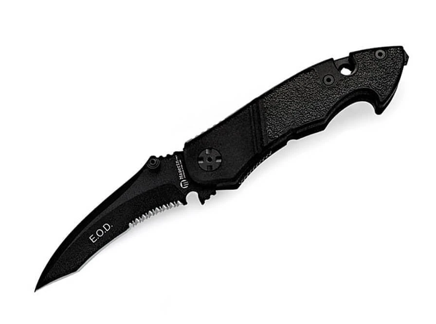 Das Raptor E.O.D (Explosive Ordinance Disposal) wurde von Maserin und Salvatore Puddu in Zusammenarbeit mit Spezialeinheiten der italienischen Polizei und dem Militär entwickelt. Die beschichtete Tanto-Klinge aus N690 verfügt über einen scharfen Wellenschliff und ist leicht gebogen. Die Griffschalen bestehen aus leichtgewichtigem Aluminium und sind mit rutschfesten Einlagen aus Kunststoff versehen. Mit Glasbrecher, Fangriemenöse, Clip und praktischem Nylon-Etui.