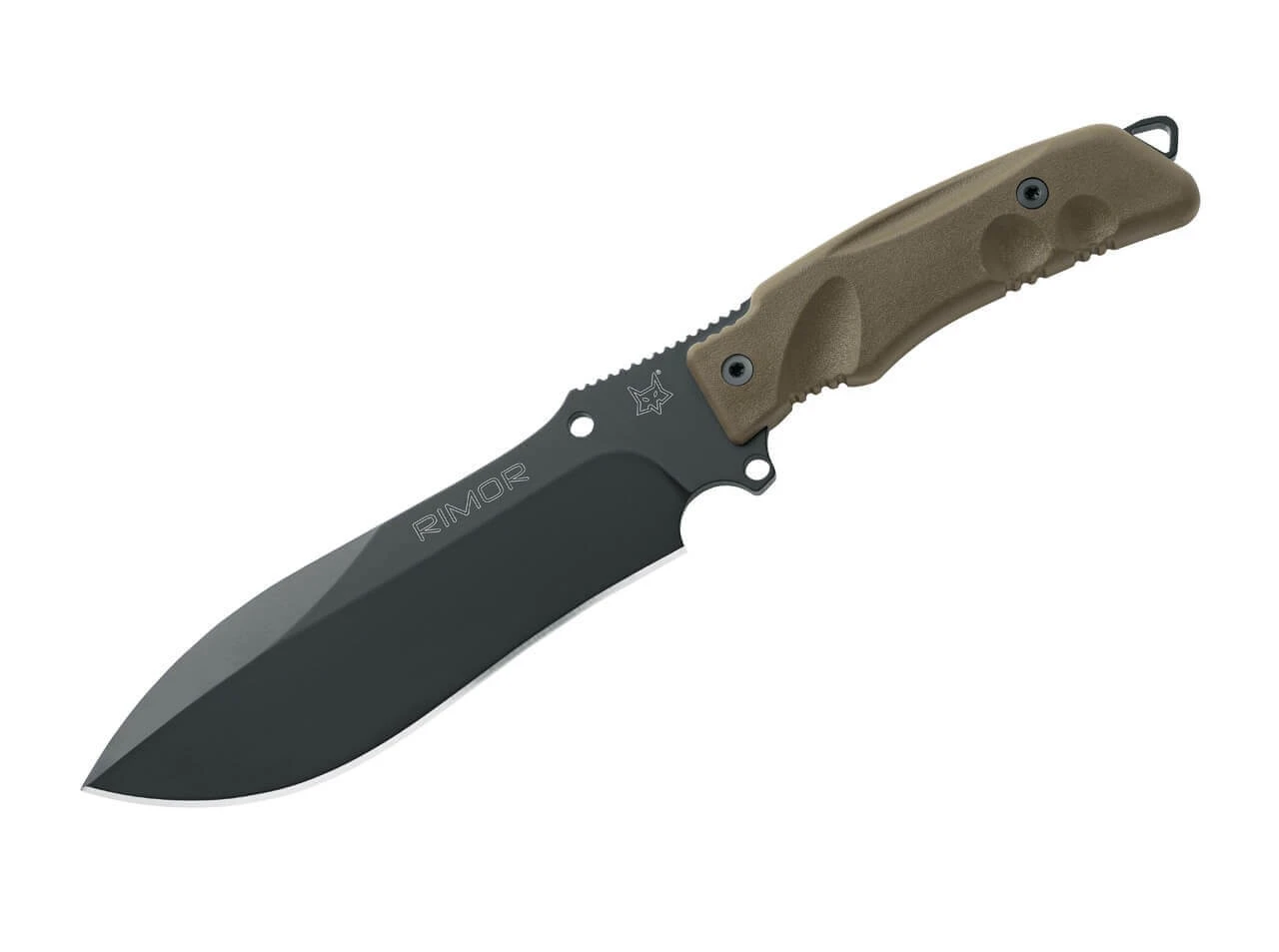 Das Fox Rimor ist ein robustes Outdoormesser mit stabiler N690 Klinge, die mit einer schwarzen Idroglider Beschichtung versehen ist. Der olivfarbene Griff wird aus widerstandsfähigem Forprene gefertigt und liegt dank der großzügigen Fingermulden auch bei schlechten Witterungsbedingungen sehr gut in der Hand. Lieferung mit MOLLE-kompatibler Nylonscheide.