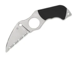 Das Swick 6 stammt aus der Feder von Spyderco Gründer Sal Glesser, welcher die bahnbrechenden Innovationen des französischen Messermachers Fred Perrin für dieses feststehende Messer aufgriff. Das Messer wurde speziell für die Selbstverteidigung konzipiert und verfügt über ein großes Loch für den Zeigefinger, womit eine noch sicherere Handhabung erfolgt. Die Wharncliffe-Klinge mit Wellenschliff besteht aus LC-200N und läuft in den pistolenartigen Griff aus G10 formschön über. Mit Boltaron-Scheide und Fangriemenöse.