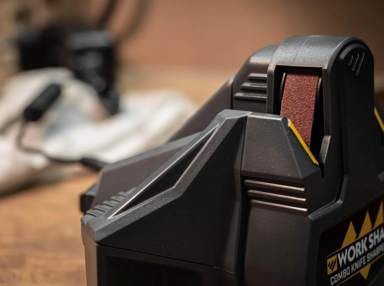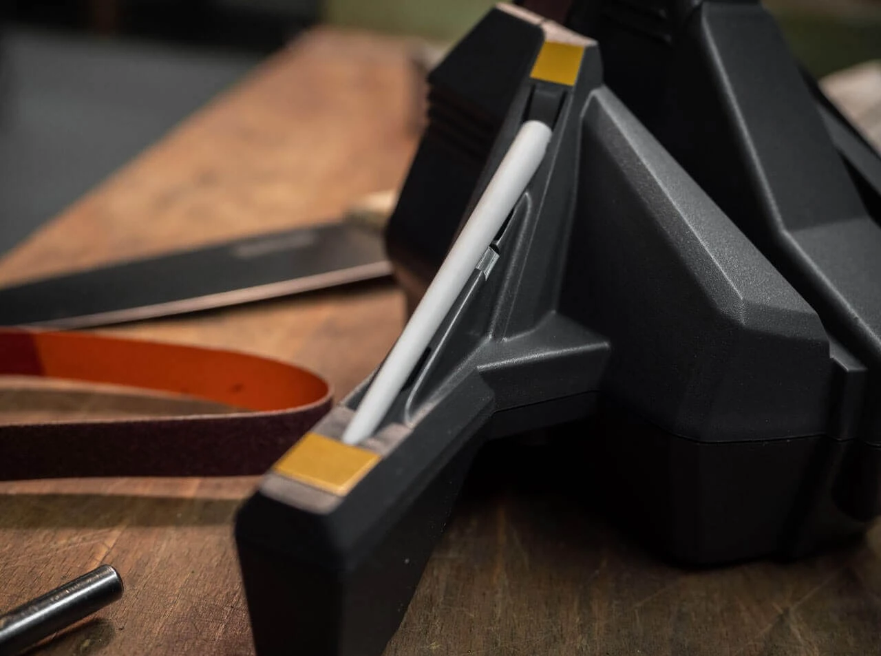 Die Verbindung einer einfachen Bedienung, die kaum Vorkenntnisse hinsichtlich des Schärfens erfordert, mit einem ausgezeichneten professionellen Schärfresultat, ist die Philosophie von Darex, die mit dem Knife and Tool Sharpener die Messlatte für Schärfsysteme deutlich angehoben haben. Der neue Combo Knife Sharpener geht noch konsequenter in die Richtung einer einfachen Bedienung. Die Klingenführung mit fest vorgegebenem Schleifwinkel, nur eine Sorte Schleifbänder und die voreingestellte Bandgeschwindigkeit machen jegliche Einstellung oder Justierung überflüssig. So lässt sich vom Küchenmesser über Taschenmesser bis hin zu Jagd- und Outdoormessern jede Messerart schnell und einfach schärfen. Der Vorschliff erfolgt auf dem Schleifband, und der Feinabzug sowie das Schärfen von Wellenschliffen wird auf dem integrierten Keramik-Schleifstab vorgenommen, der ebenfalls eine Winkelvorgabe besitzt. Gummifüße für einen sicheren Stand, strukturierter Haltegriff. Lieferung einschließlich 2 Schleifbändern (P120).